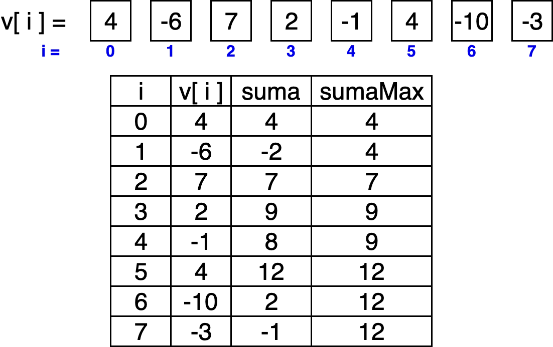 - i = 2, subsirul de suma maxima poate sa fie [0, 1, 2], [1, 2] sau [2]