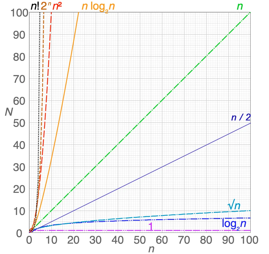 In informatica, complexitatea unui algoritm masoara cat de repede creste timpul pe masura ce marimea input-ului se mareste. Analizand graficul de mai sus, un algoritm care se aproprie foarte mult de axa Oy este considerat ineficient, iar un algoritm care este mai aproape de axa Ox este considerat eficient.