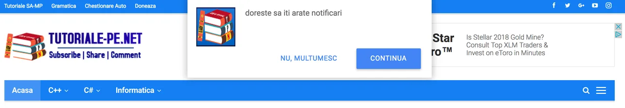 Trebuie sa apsati pe „Continua”, dupa care sa confirmati abonare prin intermediul unei notificari in browser: