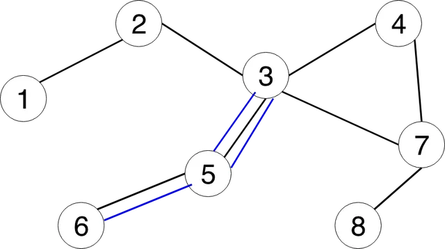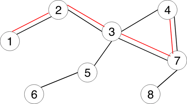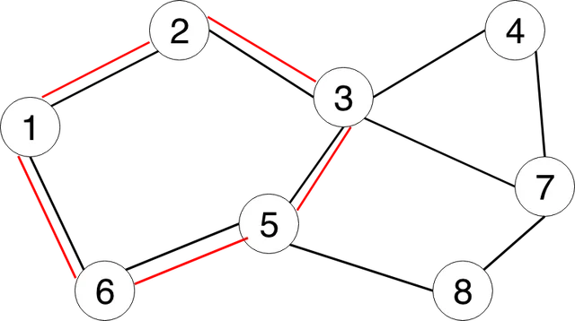 - C2 = {3, 4, 7, 8, 5, 3, 2, 1, 6, 5, 3} este un ciclu neelementar.