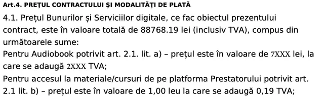 – Pentru accesul la platforma online propriu-zisă și la cursuri, se taxează simbolic cu 1 leu, la care se adaugă TVA de 19%, ceea ce pare a fi o modalitate de a evita plata TVA-ului corespunzător pentru serviciile digitale.