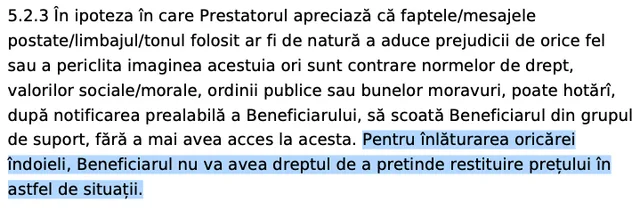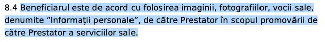 Practic ei te pot scoate cand vor din program si pot invoca faptul ca ai adus prejudicii imaginii. La fel ca inainte, este o clauza abuziva daca este vorba despre persoane fizice.