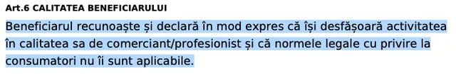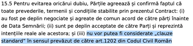 Si clauza asta este nula daca vorbim despre o persoana fizica. Pelivan al meu a desfiintat ANPC-ul si cred ca daca trece orice ii trece prin cap in contract, chiar se va aplica.