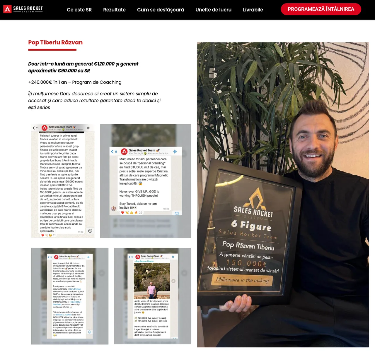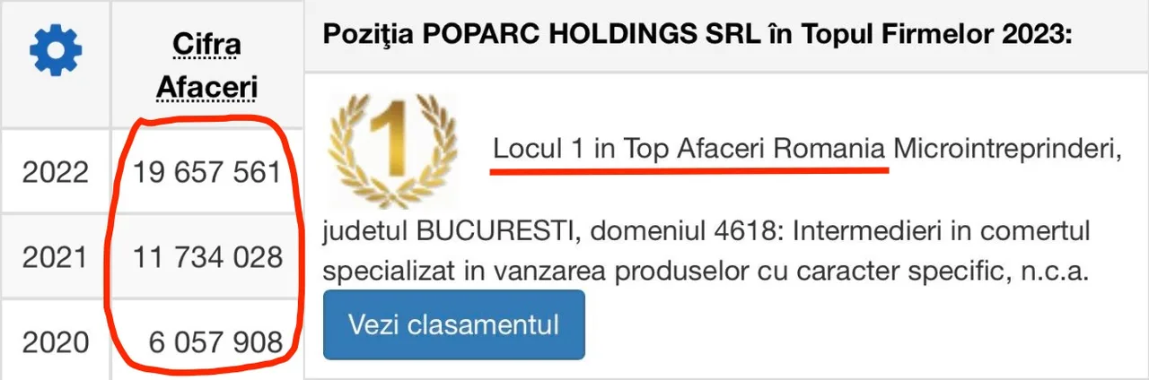 Poza de mai sus este extrasa de pe site-ul personal a lui Razvan. Putem observa cum acesta a subilinat singur cifra de afaceri si faptul ca este pe locul 1 in topul microintreprinderilor din Romania. De asemenea, in cateva TikTok-uri se mai flexeaza cu faptul ca a facut milioane de euro prin manifestare – dar vom vedea impreuna cum au fost facuti acei bani.