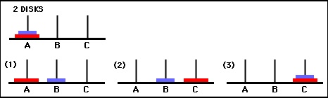 Turnurile din Hanoi este un joc matematic sau, dacă vreți, un puzzle. Este format din trei tije A, B și C și un număr variabil de discuri, de diferite diametre. Inițial discurile sunt așezate în ordine descrescătoare a diametrelor pe tija A, de la vârf către bază, astfel încât să formeze un turn.